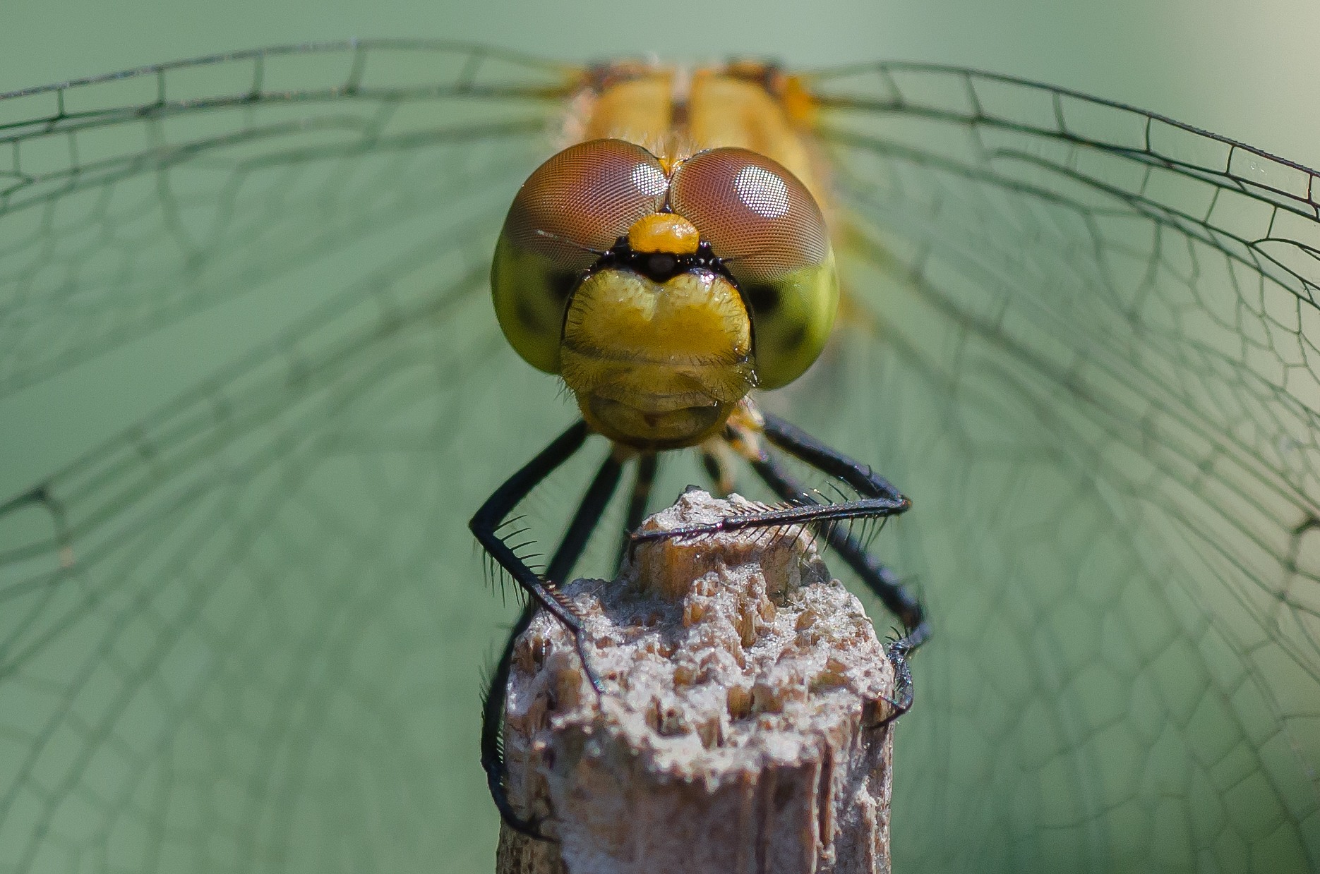 Deze libel had als rustpunt een stokje in mijn tuin uitgezocht , eerst voorzichtig vanaf een afstand en daarna steeds dichterbij komend tot op zeer korte afstand gefotografeerd