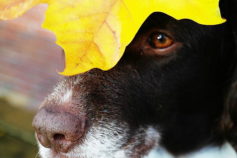 Ze liet zicht zonder enig probleem fotograferen tussen de herfstbladeren. Dit shot vind ik zelf bijzonder: het blad bleef mooi op haar hoofd liggen en met die dromerige blik in haar ogen...
