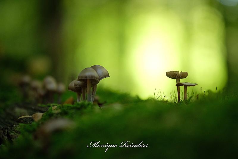 Enkele weken geleden, terwijl het nog warme zonlicht tussen de bomen door schijnt en zelfs nog enigzins zomers aandoet staan er op de bodem van het bos al deze paddenstoelen tussen het mos.