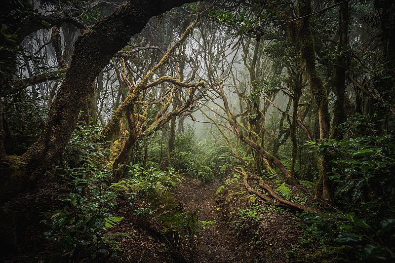 Sprookjesbos in de mist in de Anaga bergen op Tenerife