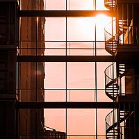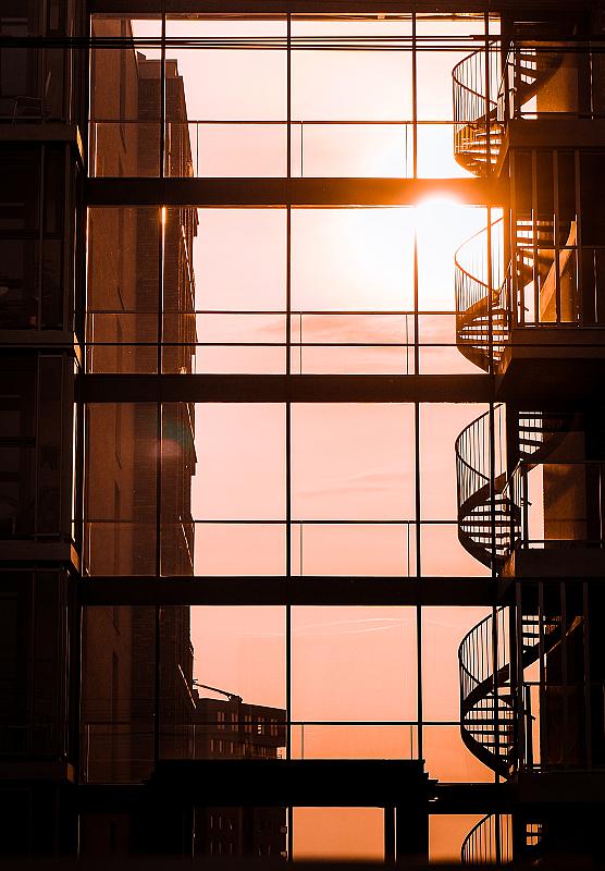 Spiraaltrap in silhouette van een ondergaande zon in Nijmegen