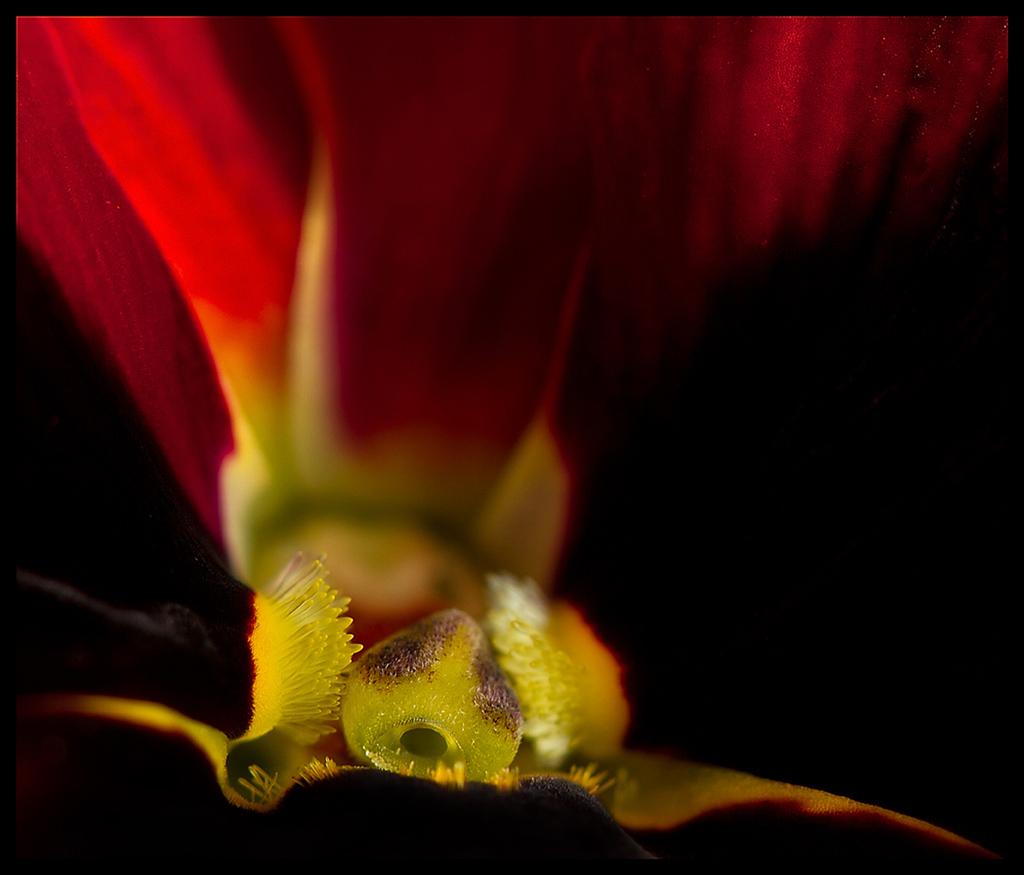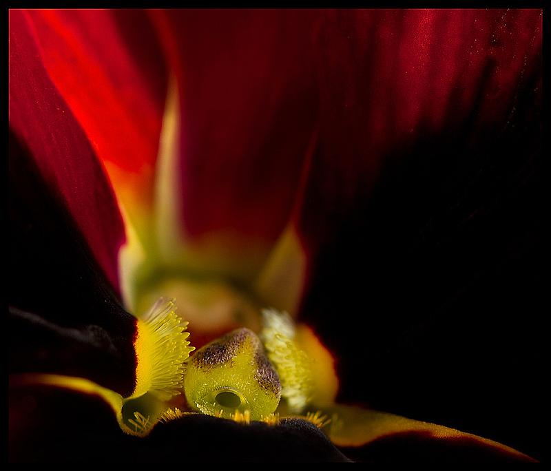 Dit is het hart van een winterviooltje,gefotografeerd met een 100mm macrolens canon.