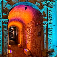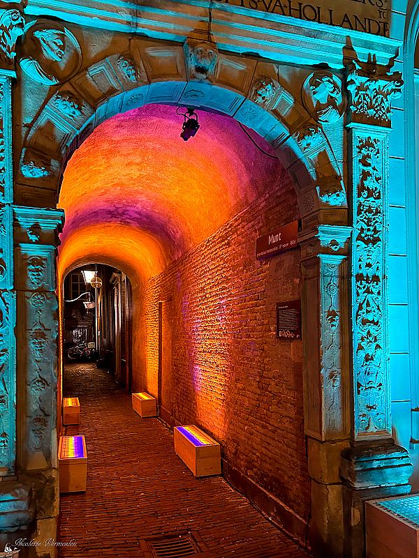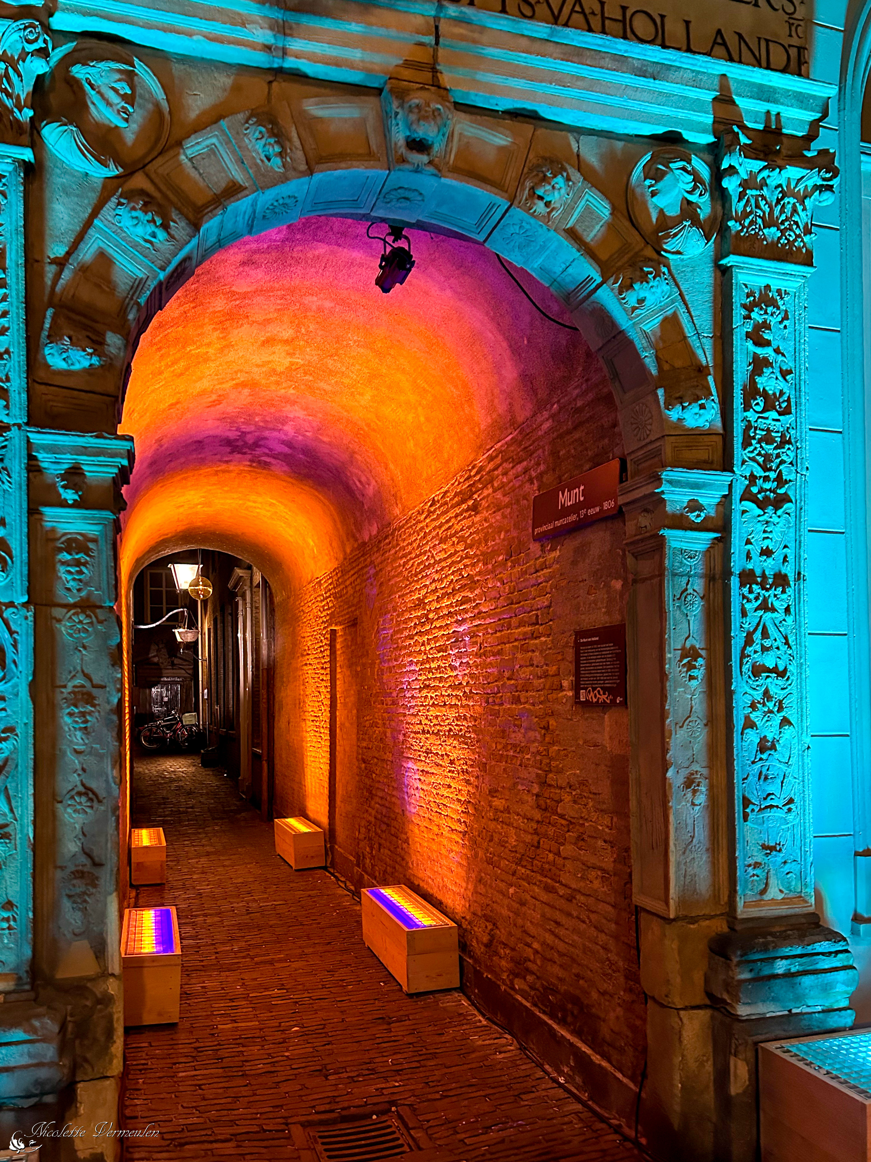 Gekleurde licht projecties tijdens de avondwandeling Dwaalspoor in Dordrecht