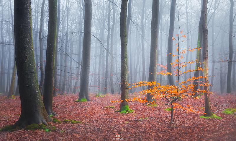Gisteren naar het bos! Het was mistig en de mist bleef hangen tussen de bomen. 1 boompje had nog schitterende oranje blaadjes en sprong direct in het oog, ook het mos aan de voet van de bomen springt er lekker uit. Door de mist is het kale winterse bos ineens mysterieus. #Texel #justinsinner #waddeneiland #fotografie