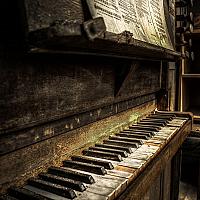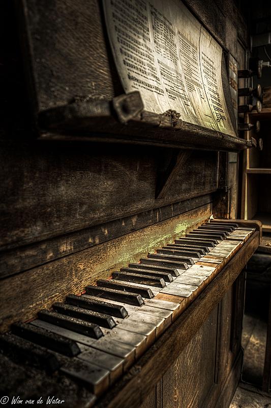 Een oud vervallen orgeltje. Zal wel niet veel muziek meer in zitten.