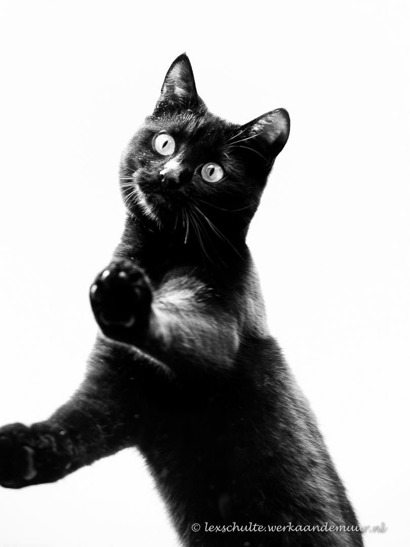 Een kat op een glasplaat. Het levert leuke foto's op!