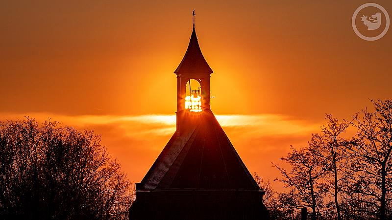 De dorpskerk van Hoedekenskerke tijdens het gouden uurtje. Hoedekenskerke is een dorpje aan de Westerschelde in de provincie Zeeland.