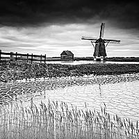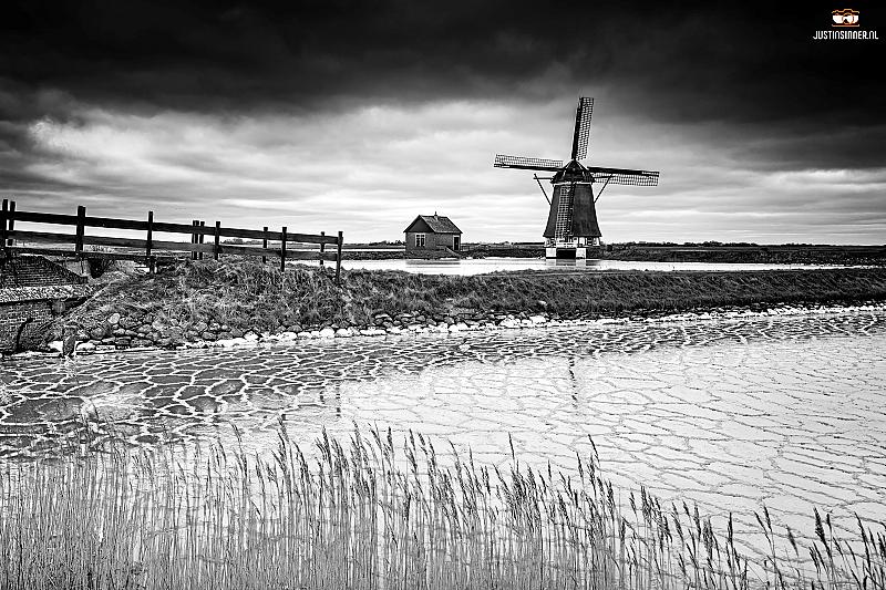 Veel ijs rondom Molen t Noorden nabij Oost gisterochtend vroeg. Weinig zon dus dan maar over op zwart wit :)! #texel #molen #justinsinner #fotografie #waddeneiland #winter