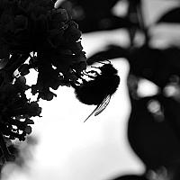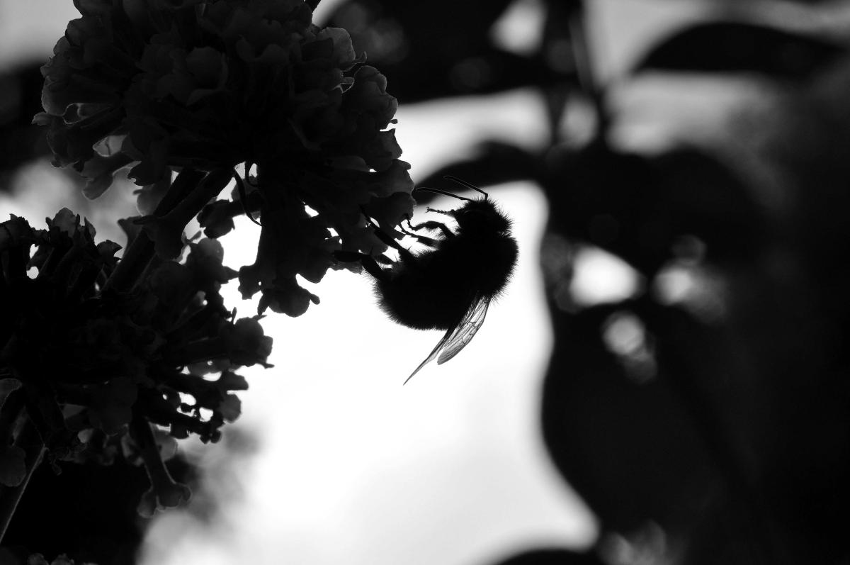 Tegen de zon in gefotografeerd deze hommel, daarna zwart/wit van gemaakt.