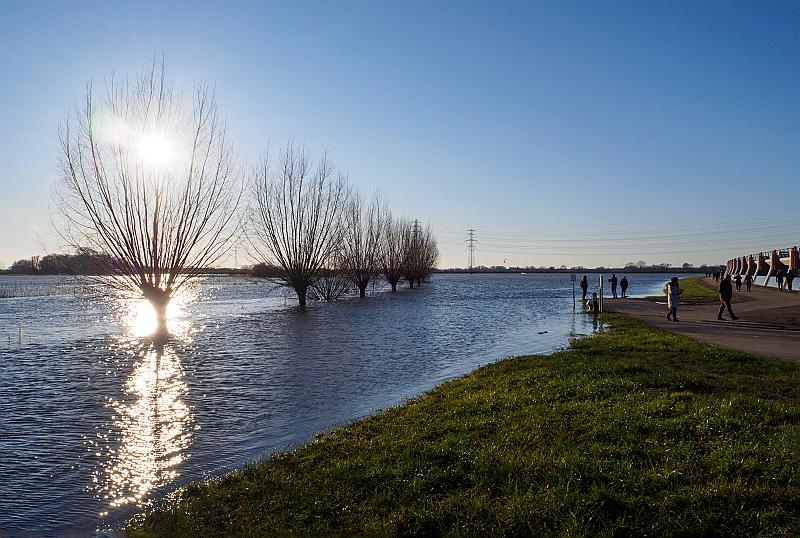 De IJssel is ver buiten haar oevers getreden en dat maakt mensen nieuwsgierig