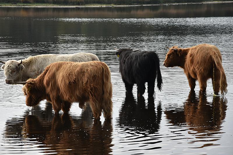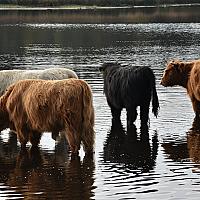 Hooglanders ontspannen in het water