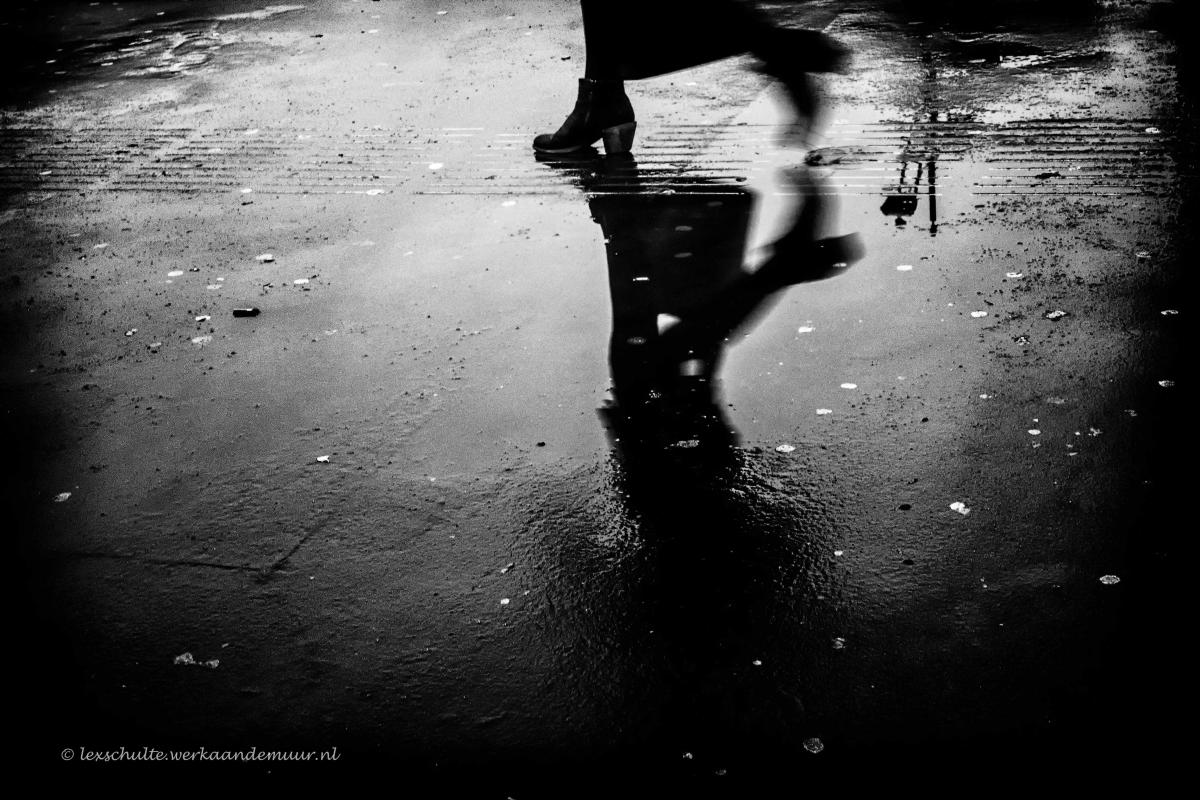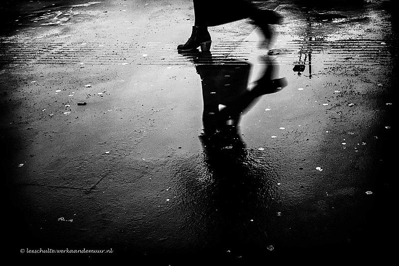 Ik ben begonnen met een projectje "Rainy day reflections" Waarin ik probeer alleen via reflecties in plassen te fotograferen bij straatfotografie.