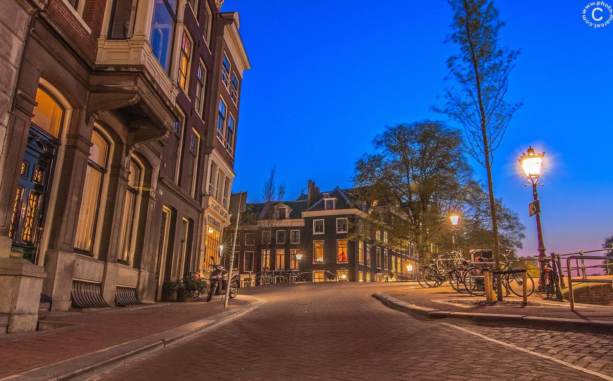 Herengracht Amsterdam @ blue hour vanuit kikvors-perspectief.