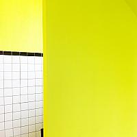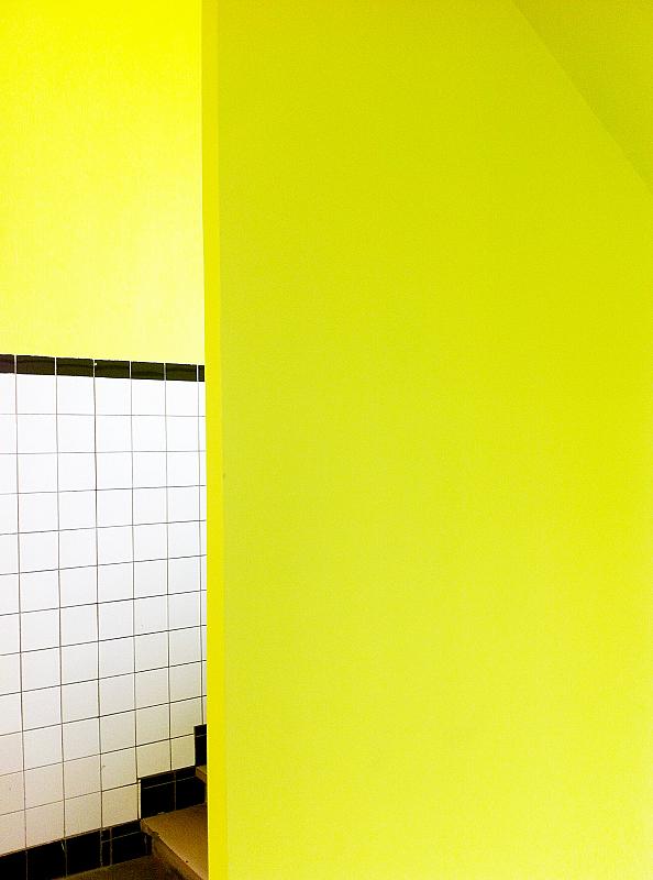 Dit is in de trap naar het restaurant van 'Hotel Droog' in Amsterdam. Ik ben iemand die nooit echt kleur draagt of koopt, maar het kleurgebruik bij deze trap vind ik zo mooi, dat ik een perspectief zocht om mijn overtuiging van het kleurgebruik zo pakkend mogelijk vast te leggen.