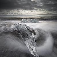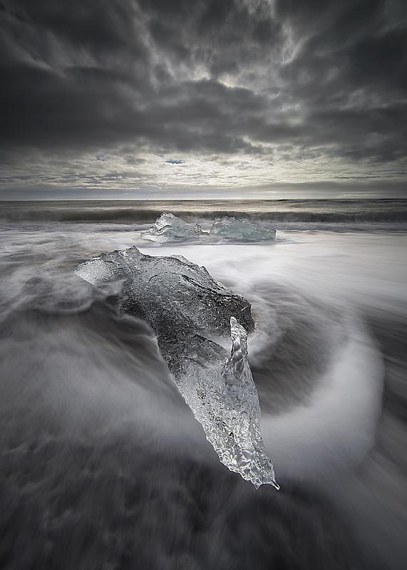 vers van de gletsjer drijven ze de oceaan in tot ze door de stroming terug op het zwarte lava stand aanspoelen, en wegsmelten ...
