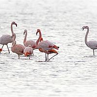 Elk jaar komt dit groepje flamingo's op bezoek in Nederland.