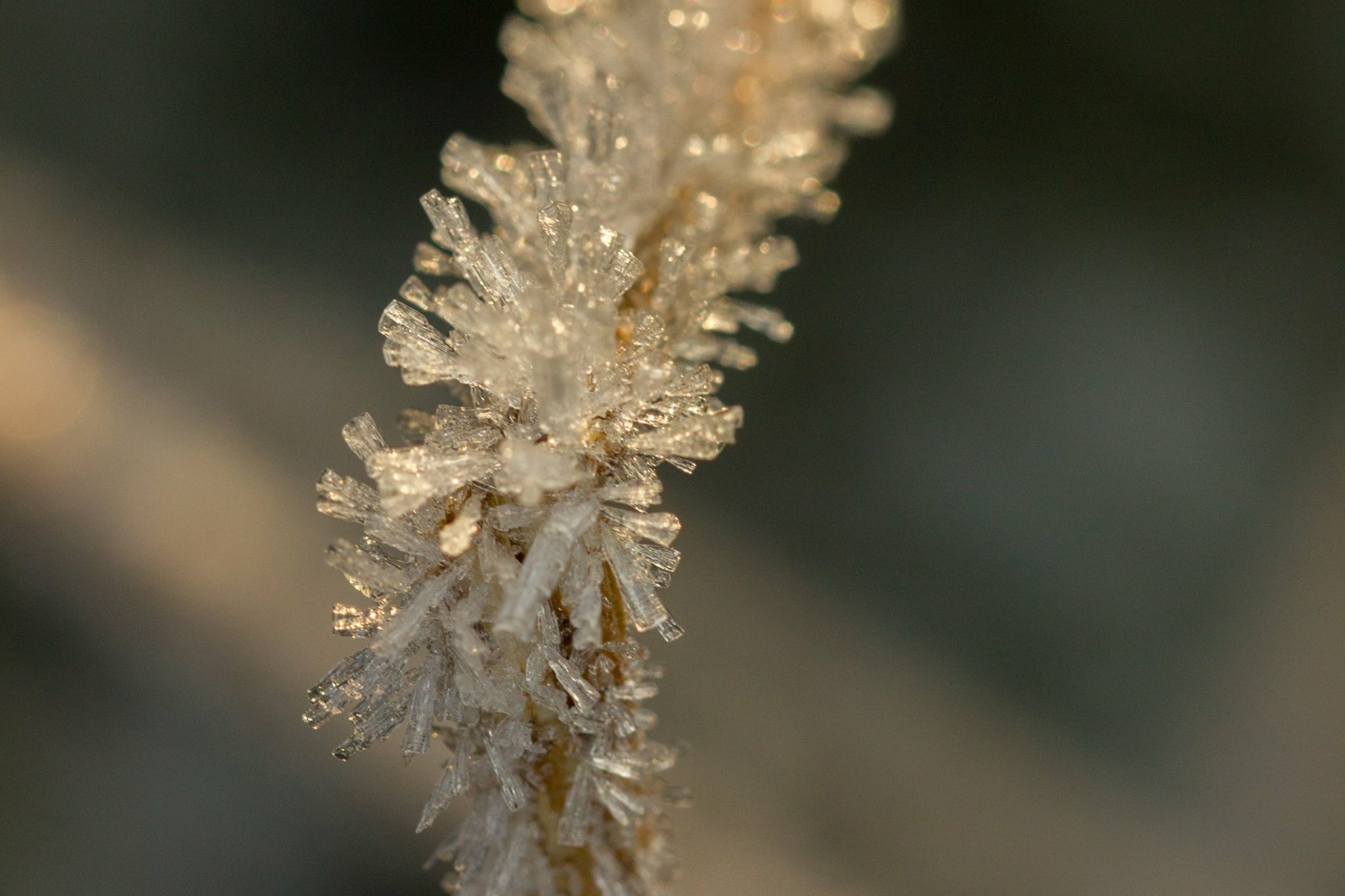 Met de Marco lens deze foto gemaakt van mooi ijskristallen op een tak.