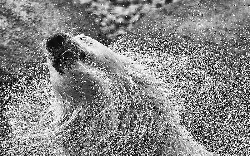 Ijsbeer gaat los in het water.