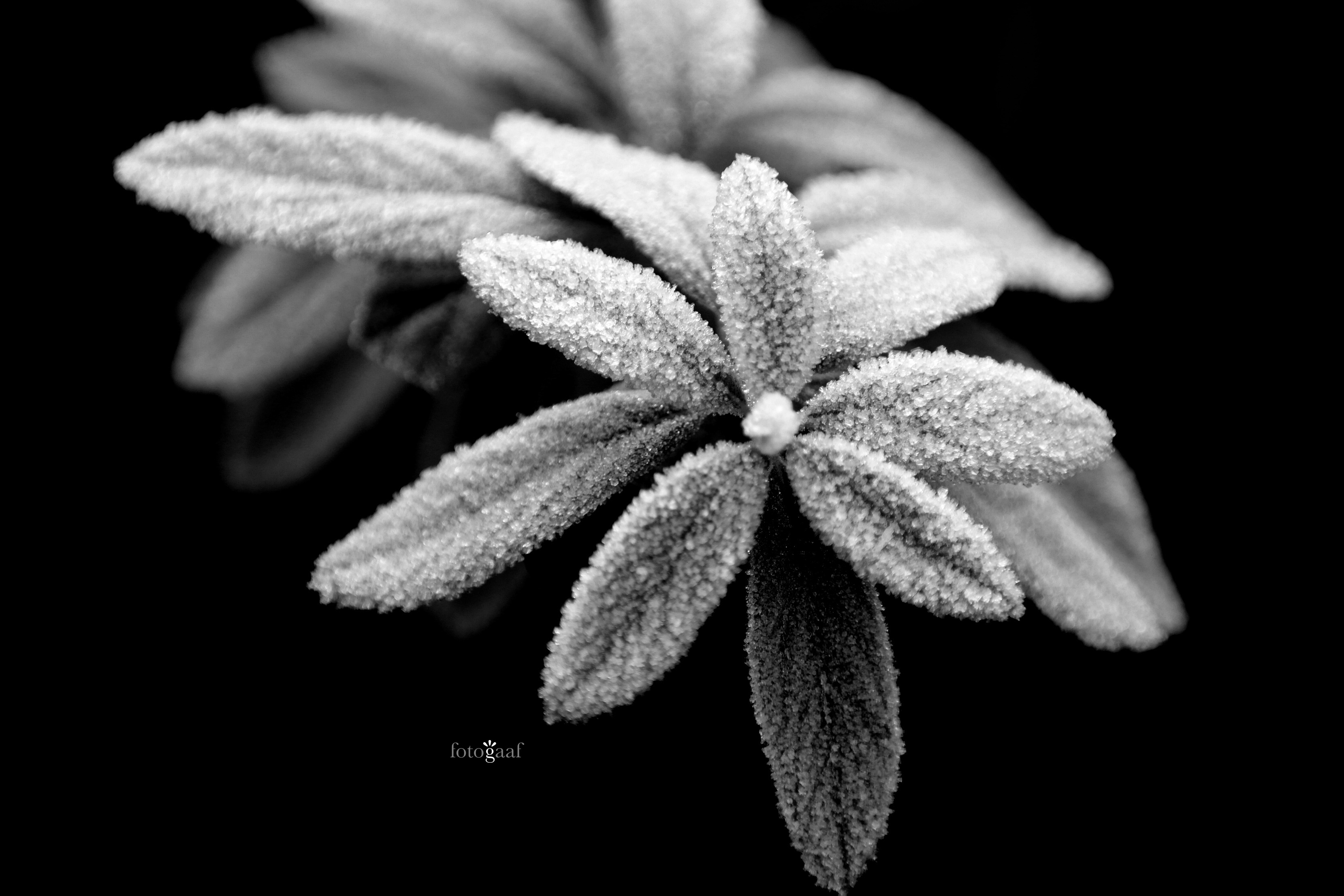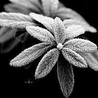 Net een bloem van ijs, na een nacht met vorst ziet de wereld er bij zonsopgang betoverend mooi uit. Het is net een broche met een suikerlaagje...