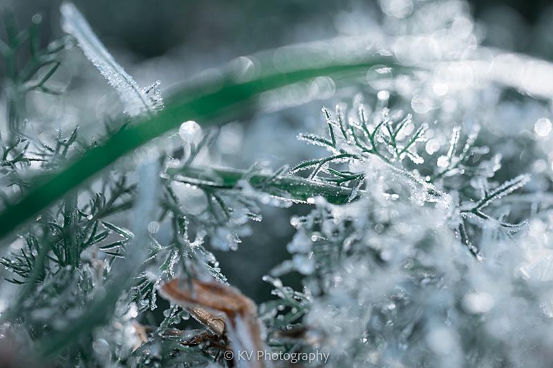 Dat vraagt om foto's. Om Macro foto's. 7 minuten later begonnen hond al het ijs eraf te likken. Net op tijd geweest voor foto's te maken dus!