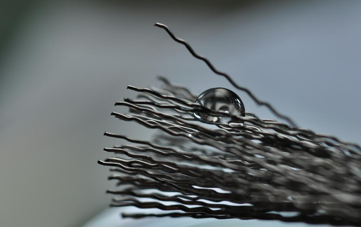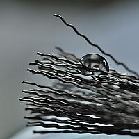 druppel op een stuk gereedschap, een ijzerenborsteltje.