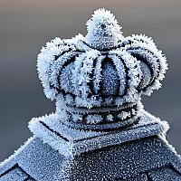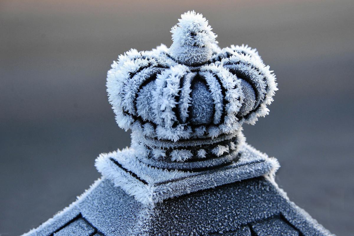 Ik vond de fonkelende ijskristallen van de aangevroren mist op onze metalen brievenbus een foto waard...