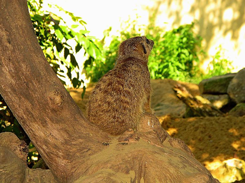 Stokstaartje keert me de rug toe in Dierenpark Emmen.