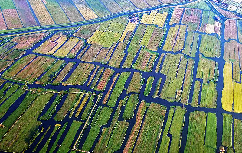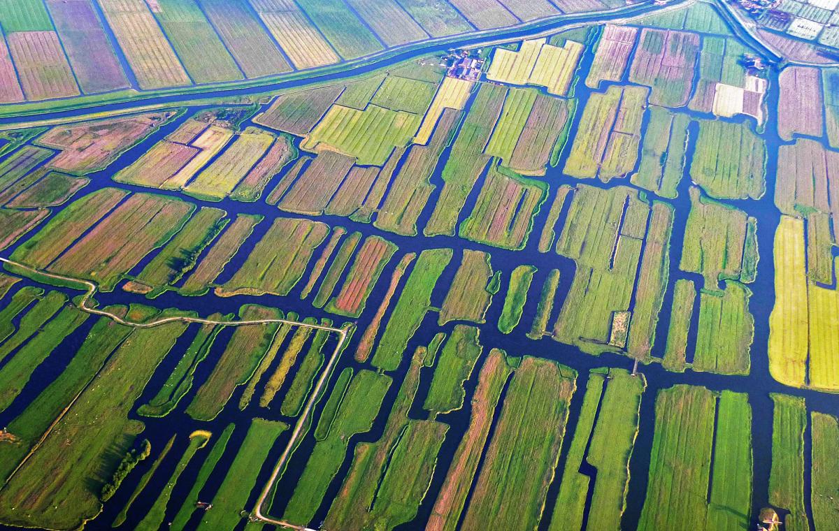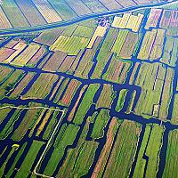 Foto van het natuurgebied Ilperveld, genomen vanuit een vliegtuig bij de landing.