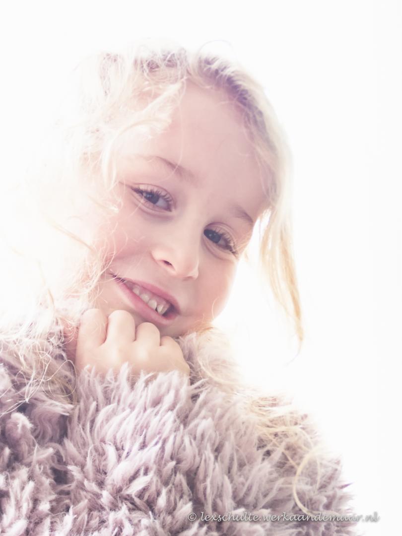 Portret van mijn dochtertje gemaakt met een lensbaby in tegenlicht.