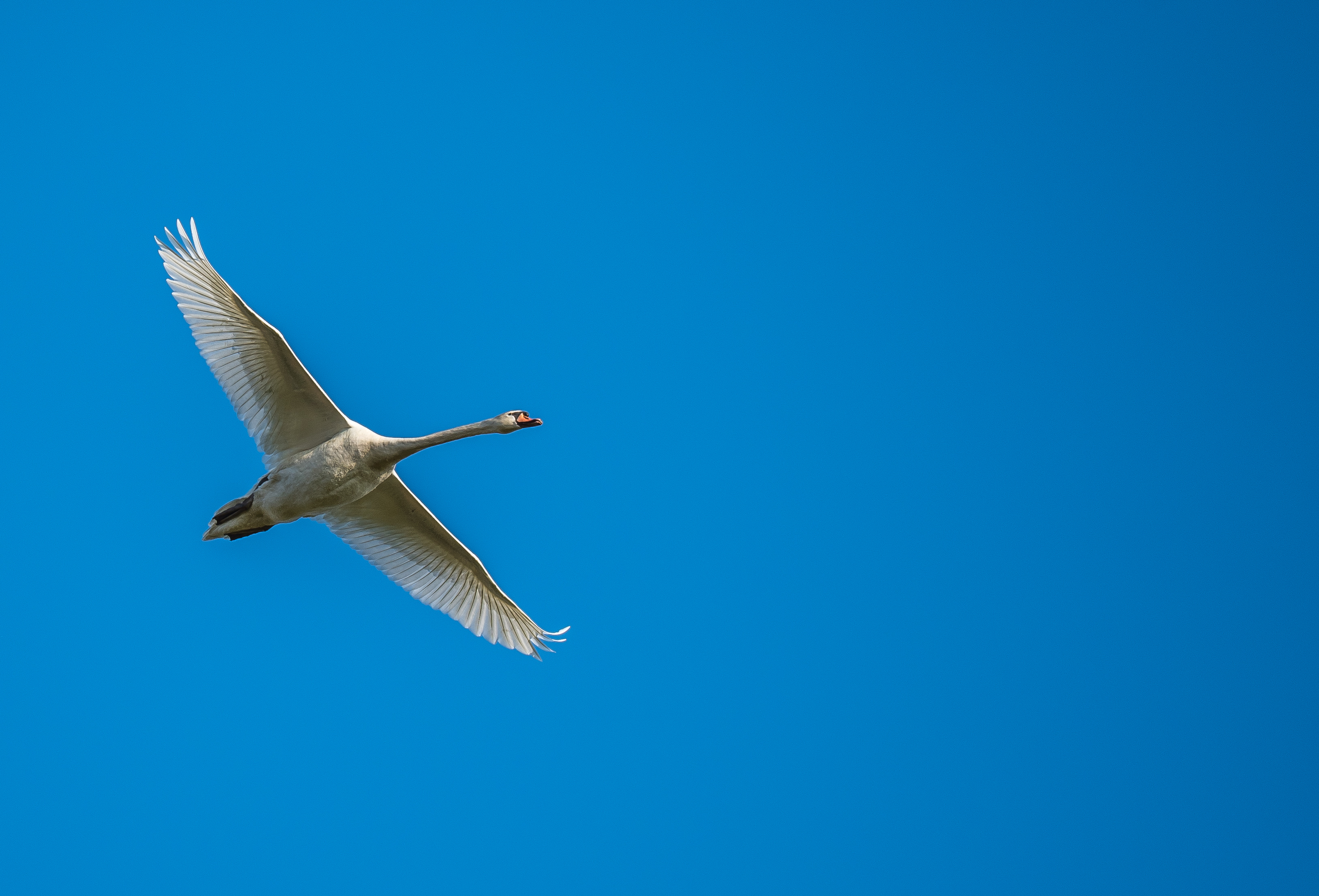 Elke keer weer ben i,k onder de indruk van een overvliegende zwaan