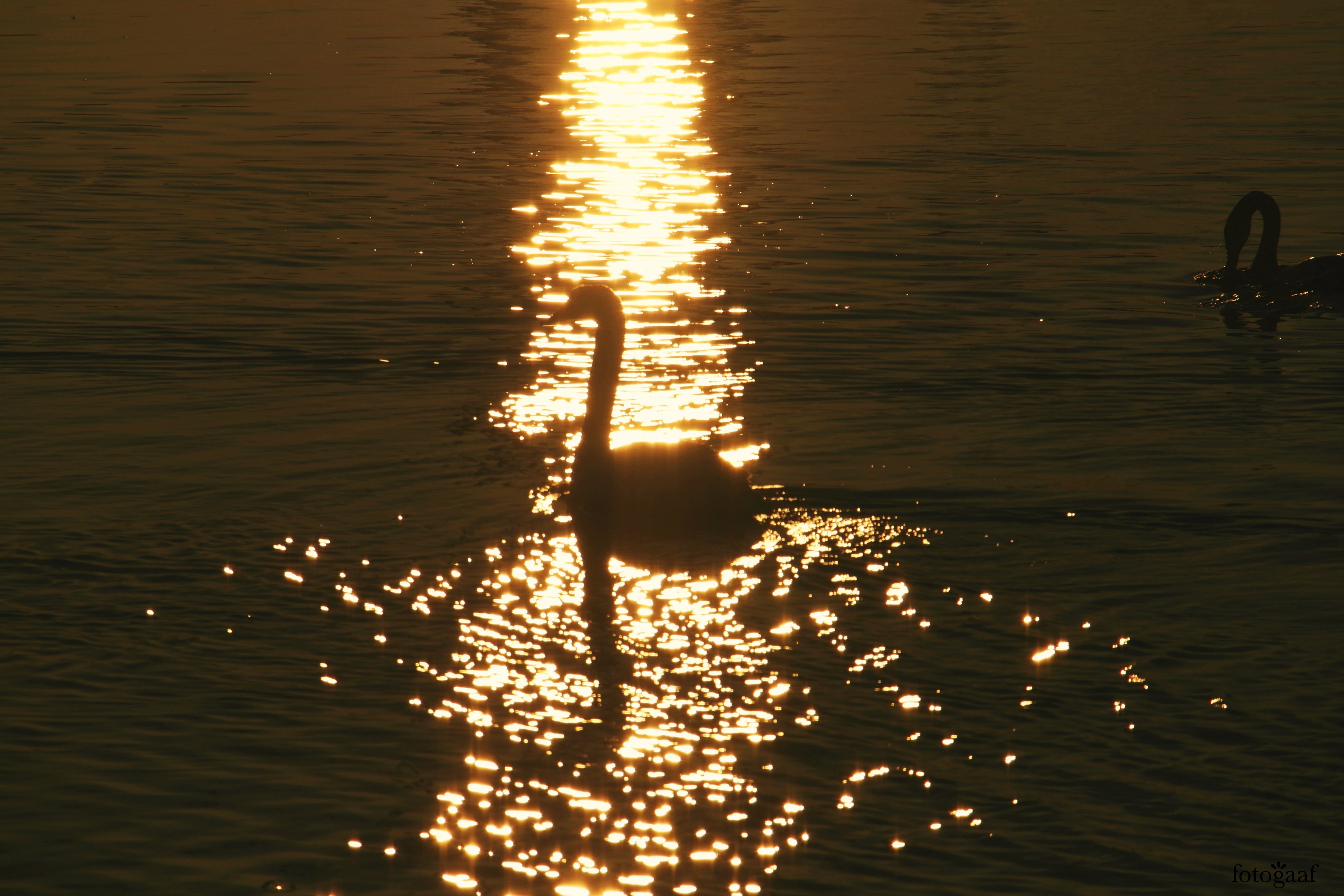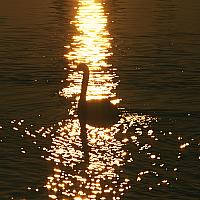 De vrieskou in afgelopen zondag, ik ging voor een prachtige zonsopkomst, tegelijkertijd kwam er een groep zwanen mij in het gouden zonlicht tegemoet zwemmen.