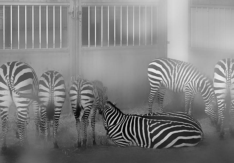 Tijdens de Pasar Malam in de Bush van Burgers Zoo (erg leuk) waren er 's-avonds verschillende stallen open o.a. van de Zebra's. Het licht met de reflecties en de dikke ramen maakte het lastig om te fotograferen en ik had geen externe flits mee. Na de standaardbewerking was ik allesbehalve tevreden en ook na omzetting in zwart wit wilde ik eigenlijk de foto's verwijderen totdat ik een ingeving kreeg en het filter oppervlak vervagen van photoshop elements 7 heb gebruikt en daarna ook nog wat extra contrast en helderheid toegevoegd. Hetzelfde heb ik gedaan bij de Giraffe maar deze hebben toch een andere sfeer en bij de Olifant in zijn nachthok. Anders dan anders maar wel tevreden nu.