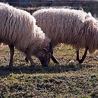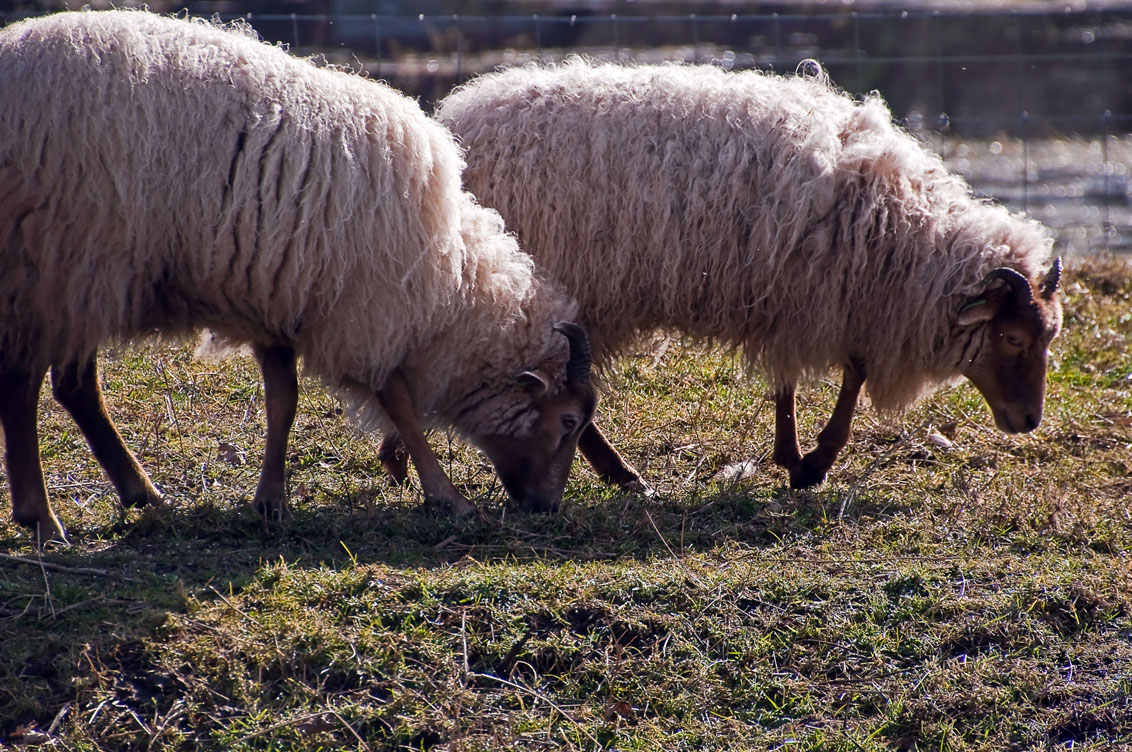 Deze zonnige maar nog koude dag werd er goed gegeten van het nog met dauw bedekte gras door deze schapen.