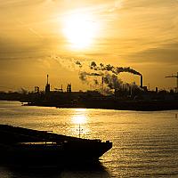 Het silhouet van de Chemours fabriek in Dordrecht.