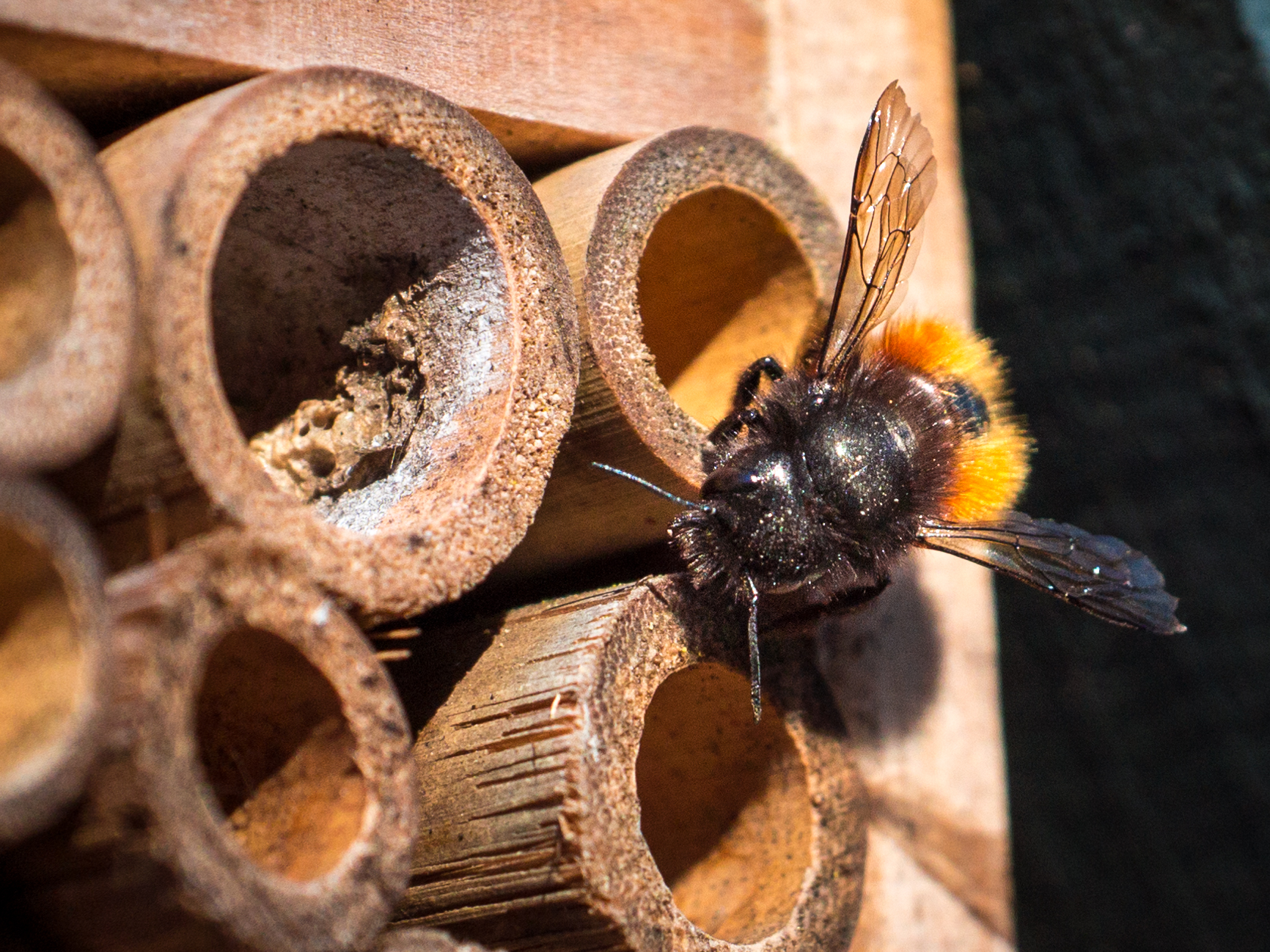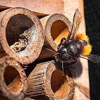 De eerste bewoners van ons insectenhotel zijn ingecheckt.