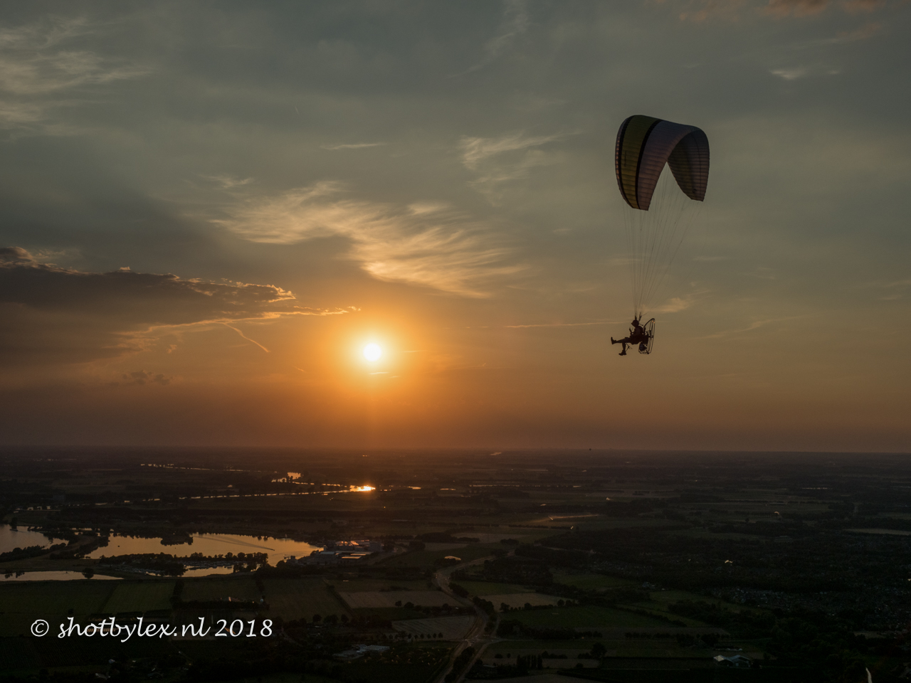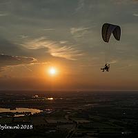 Een paramotor kwam voorbij onze hetelucht ballon vliegen. Met de ondergaande zon op de achtergrond was het een prachtig gezicht!