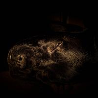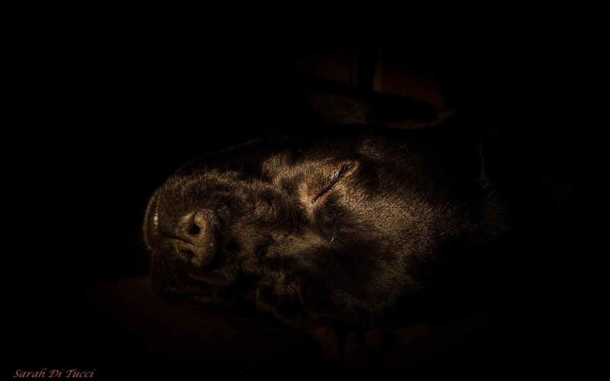 Onze hond in het ochtendzonnetje.