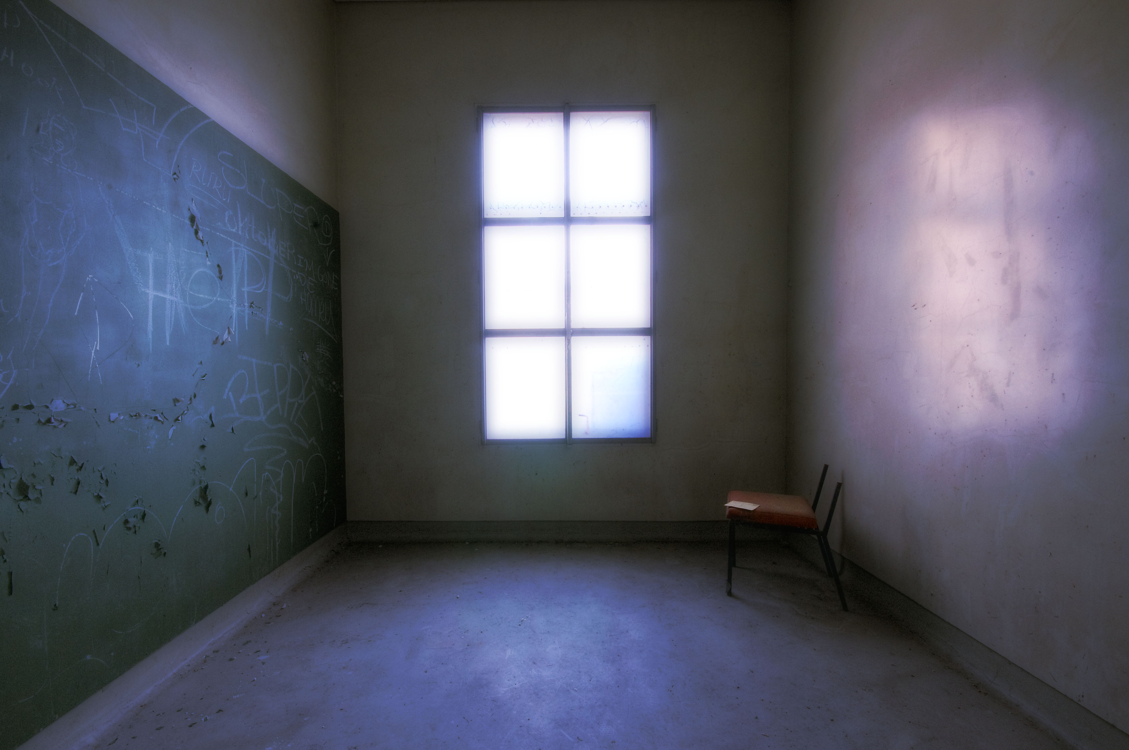 Foto van isoleercel in voormalig psych. centrum Santpoort in Bloemendaal
