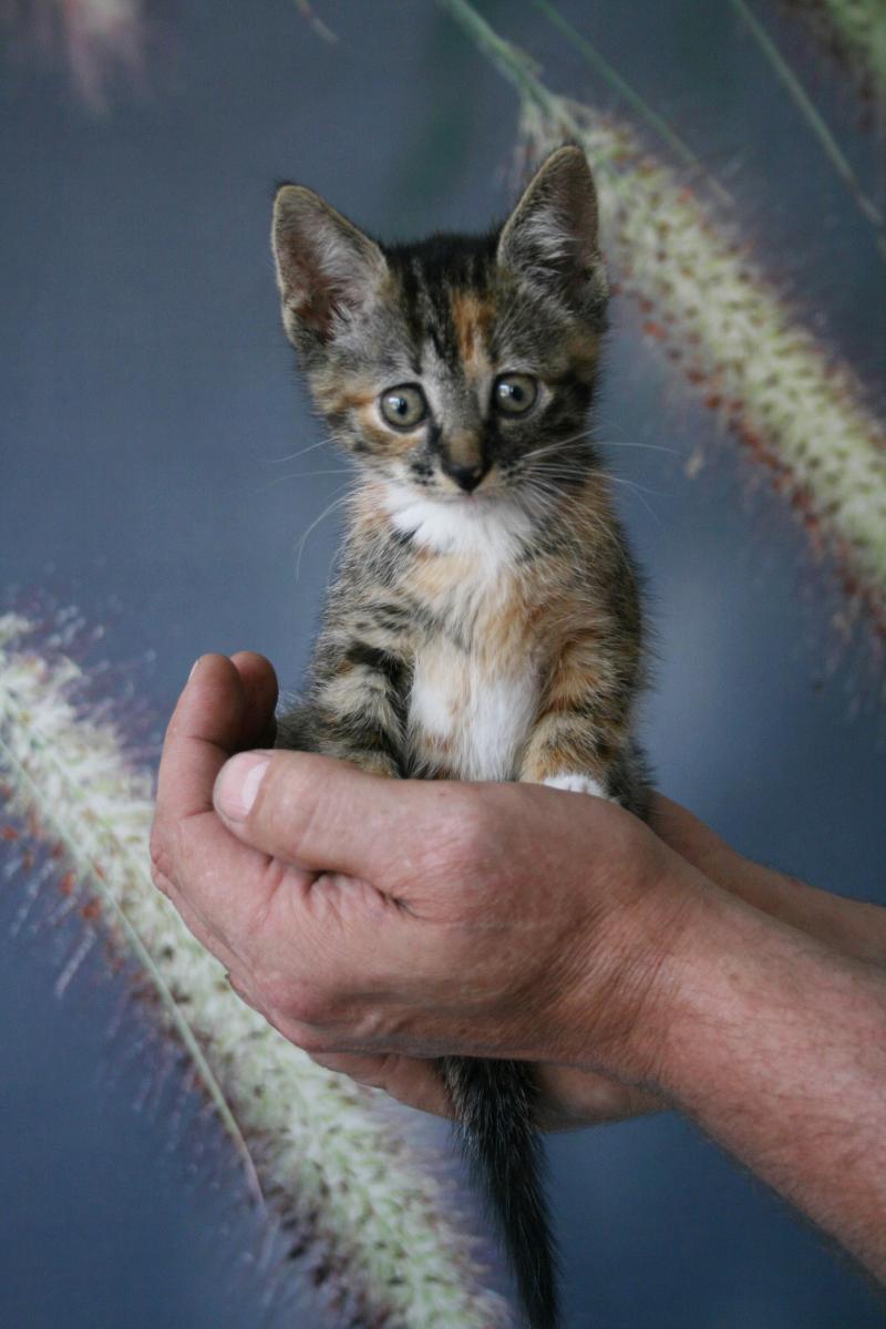 Kleine Jolly past in een grote hand... een lief contrast