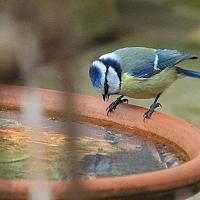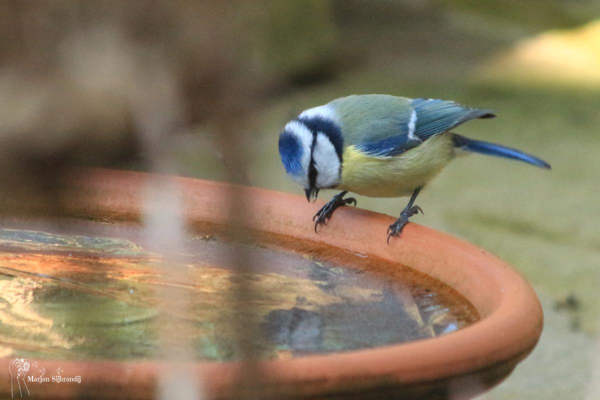 Geweldig moment, het pimpelmeesje dacht even water te kunnen drinken!