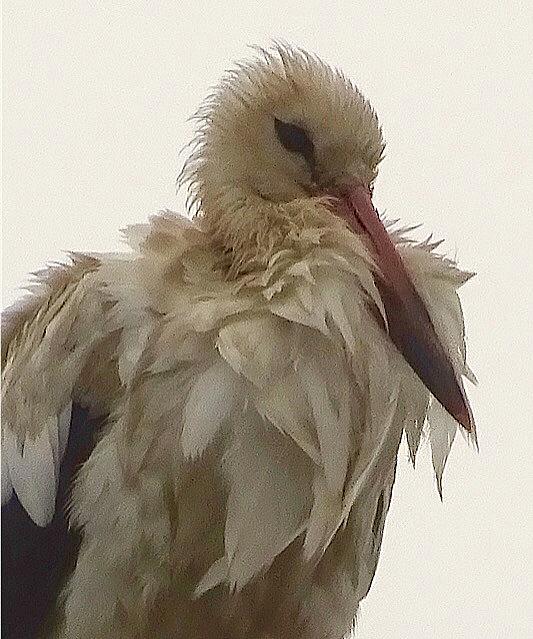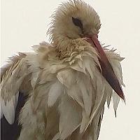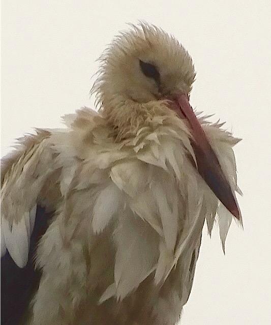 Jonge ooievaar in de wind