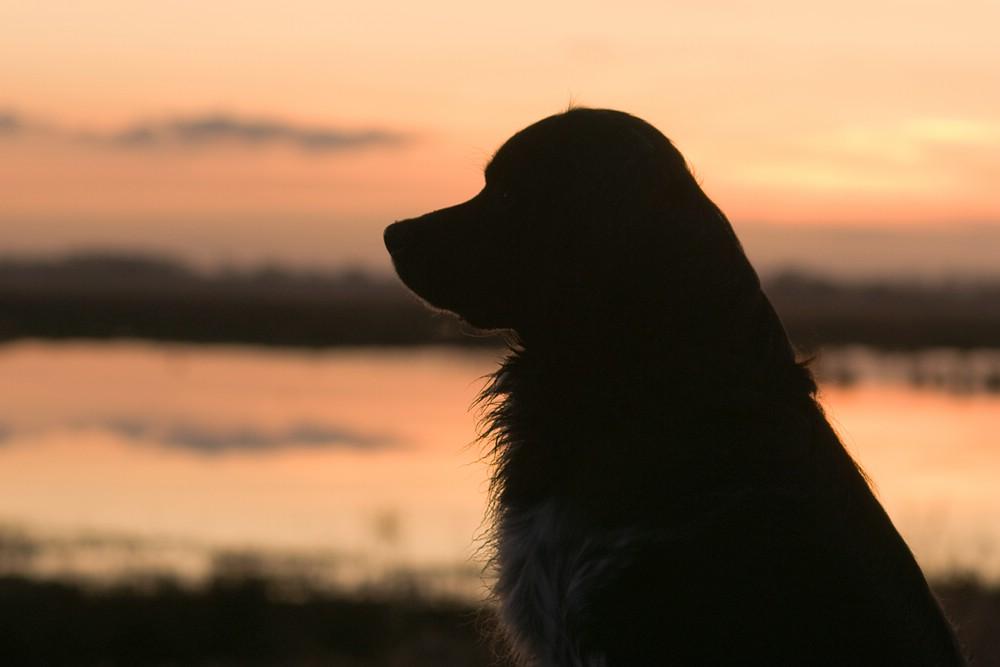 Na een uitgebreide winterwandeling genieten van een prachtige zonsondergang.