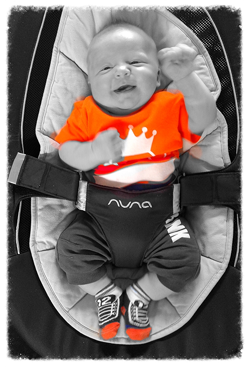 super foto van een baby van 6 weken onder het wk