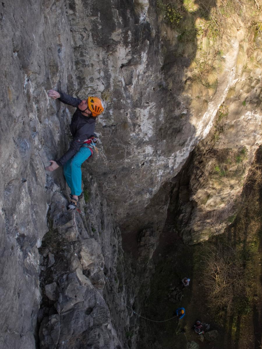 Julius Zonneveld klimt een route in Beez in België afgelopen februari.