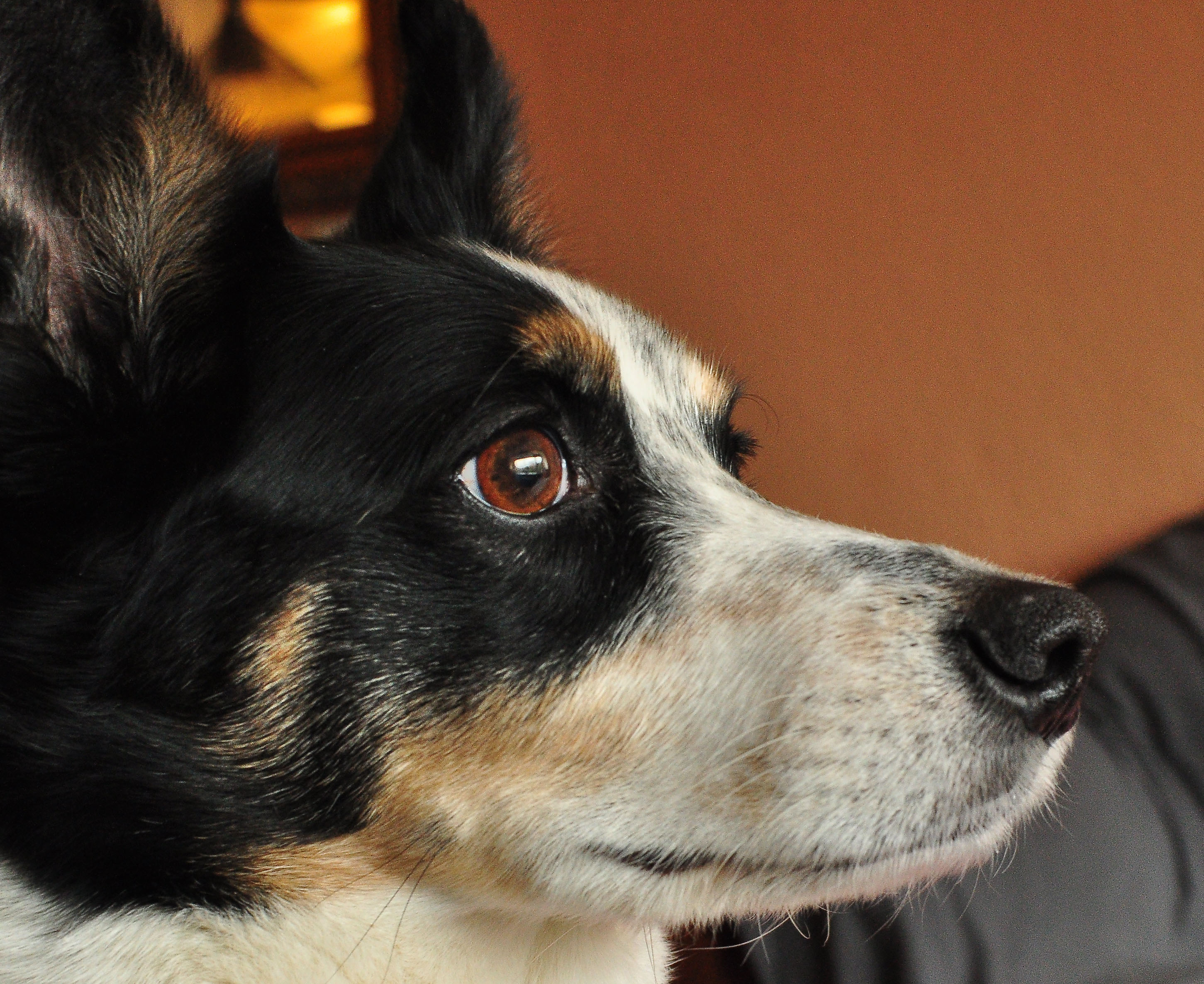 Overall, deze foto reflecteerd de aandacht van de hond naar buiten. Hij zag een kat op de schutting en vergat mij totaal waardoor ik aardig dichtbij kon komen om deze foto te maken.