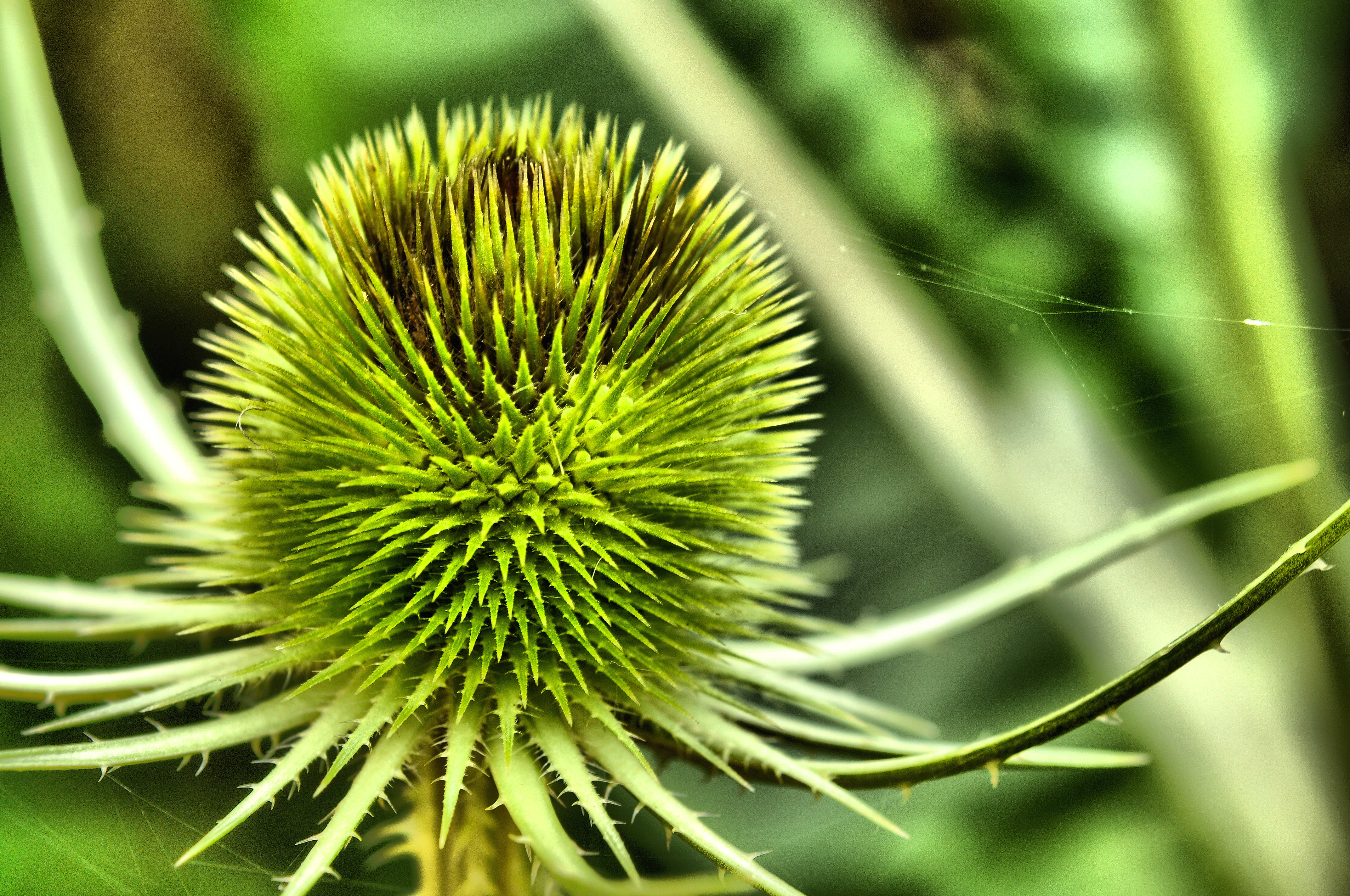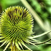 Deze stekel plant zie je niet zoveel meer, maar bij mijn ouders in de tuin staan er nog steeds een paar. Een Kaardebol. Als hij bloeit komt er een lila krans van kleine bloemetjes om de bol heen.