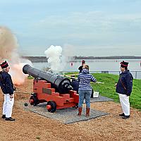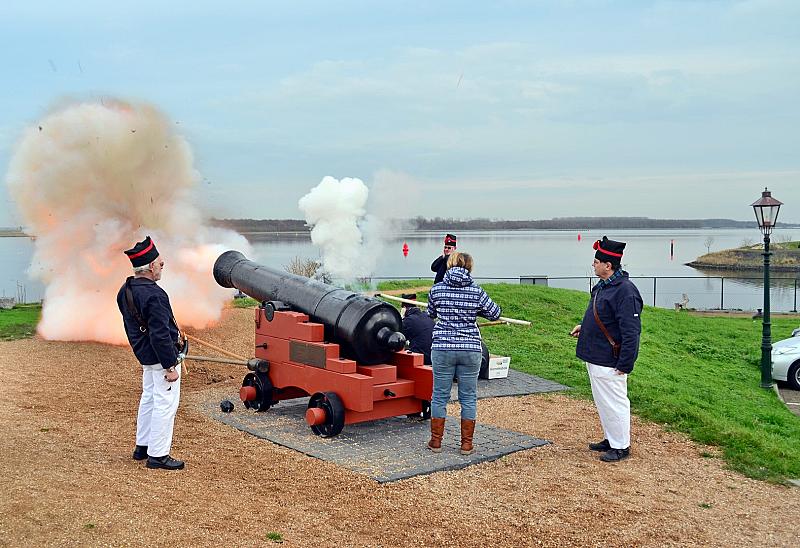 Afschieten van kanon tijdens Dickensmarkt te Veere 13 december jl.