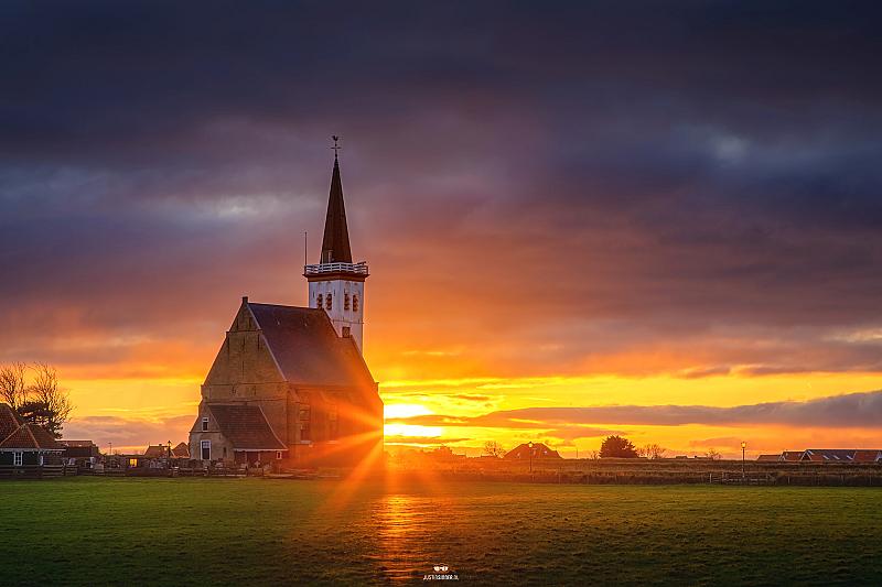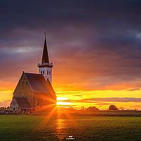 Kerk van Den Hoorn afgelopen week tijdens zonsondergang.