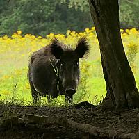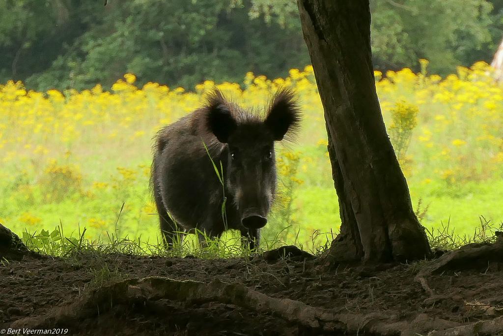 Tijdens mijn paddenstoelen zoektocht stuitte ik op een rotte wilde zwijnen , ...welke allemaal in de grond aan het wroeten waren op zoek naar iets eetbaars ,