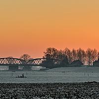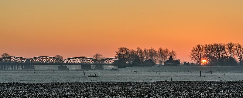 Terwijl heel Grave en omgeving in de ban is van de kapotte stuw bij de John S. Thompson brug door een aanvaring met een tankschip (zie NOS journaal 30-dec-2016), sta ik iets verder op plaatjes te maken van deze brug bij een prachtige opkomende zon.